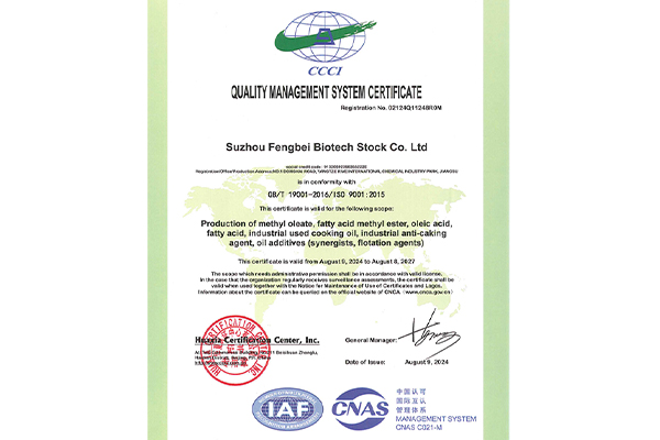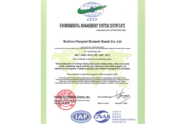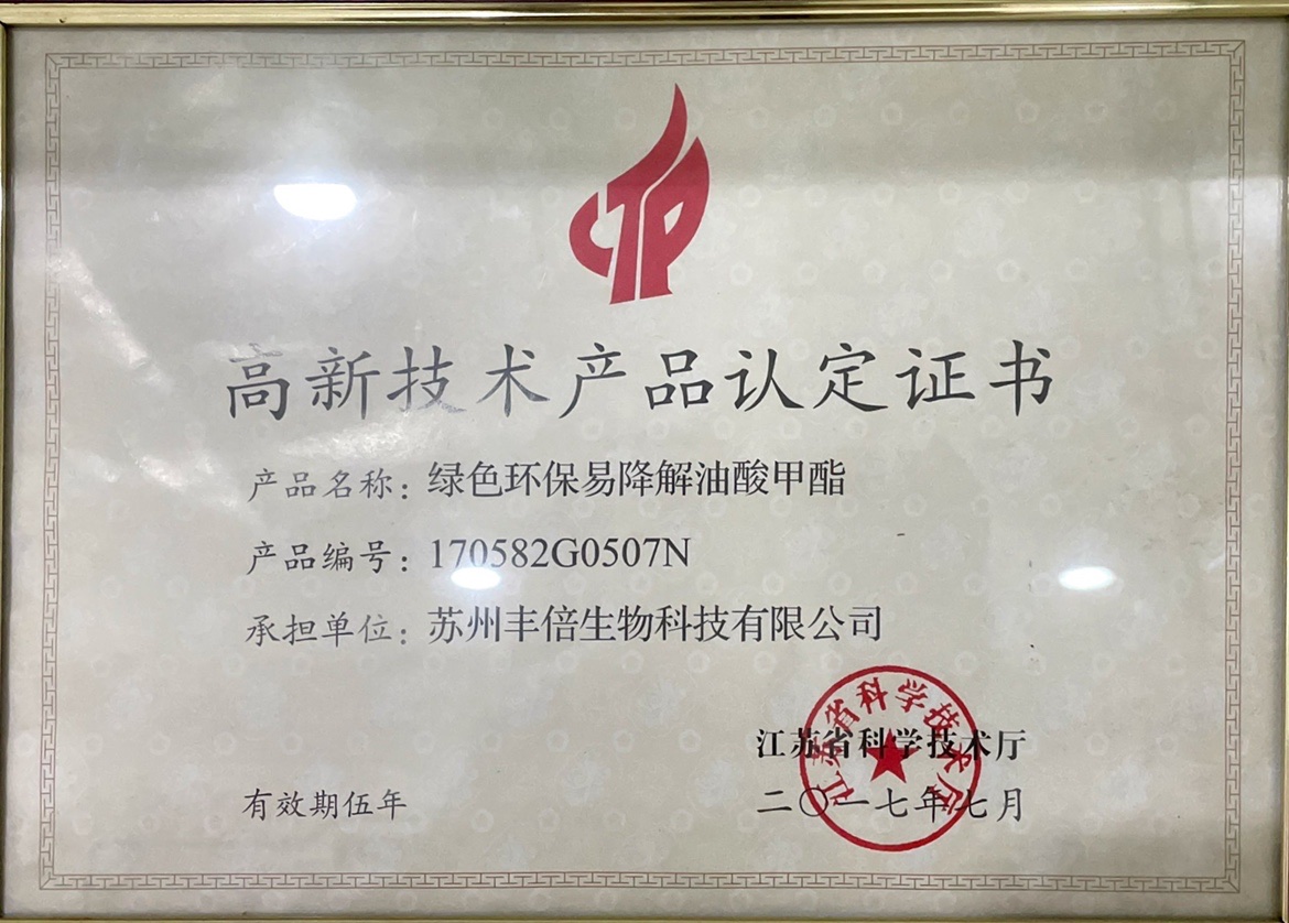 Suzhou Fengbei Biotechnology Co., Ltd. is a high-tech enterprise in the field of comprehensive utilization of waste resources, which mainly produces resource products from waste oil. Based on long-term research and development investment and industrial practice, the company has continuously expanded the depth and breadth of comprehensive utilization of waste oil and oil resources, forming a waste resource recycling industry chain of "waste oil - biofuel (biodiesel) - bio-based materials". In addition, the company also relies on its own oil comprehensive utilization of core technology and channel advantages to provide customers with oil chemicals.