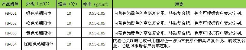 FB-06型系列產(chǎn)品為蘇州豐倍自主研發(fā)的新型肥料著色劑產(chǎn)品,適用于顆粒復合肥料的外著色,顏色包含黑色、黃色、綠色、藍色、橙色等各種色系,可與肥料廠家的內(nèi)著色匹配,更可提供定制化的配色解決方案。所著顏色鮮艷,辨識度高,持久性強,是復合肥廠家著色的產(chǎn)品。